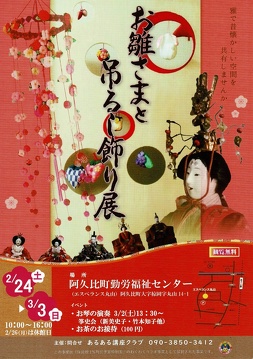 2024年02月19日(月) お雛様と吊るし飾り展が開催されます 『お雛と吊るし飾り展』が開催されます。 雅で昔懐かしい空間をお楽しみいただけます。ぜひお越しください。 日時:令和6年2月24日(土)~3月3日(日) (2月26日は休館日) 時間:10:00~16:00 場所:阿久比町勤労福祉センター(エスペランス丸山) お問い合わせ先:あるある講座クラブ 安井 090-3850-3412