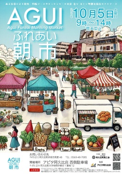 2024年09月30日(月) AGUIふれあい朝市のお知らせ AGUIふれあい朝市が開催されます 日時:令和6年10月5日(土)9時~14時(荒天中止) 場所:アピタ阿久比店 西側駐車場 お問い合わせ先:阿久比町商工会 0569-48-7085 商工会員による飲食、物販ブースやキッチンカーの出店及び阿久比町観光協会のPRブース 観光協会はアグピーグッズ、御城印、知多木綿の販売にガチャガチャ登場します。 お越しをお待ちしております。